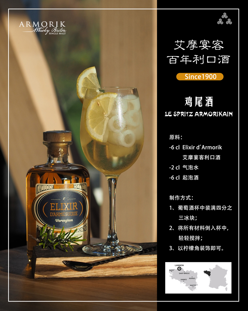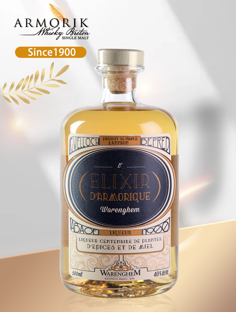 ELIXIR D’ARMORIQUE艾摩宴客百年利口酒首创于1900年,是法国布列塔尼地区草本,蜂蜜与威士忌精心手工酿制的琼浆玉液,是艾摩宴客威士忌酒厂历史开篇大作!