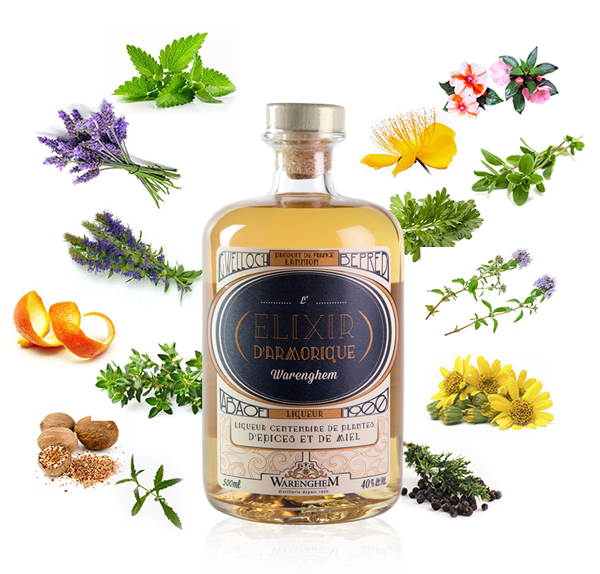 35种草本植物在水和酒精中浸制后,经蒸馏获得百年利口酒原液,这也是这一产品的精髓所在。在这35种草本植物中,我们尤其感知到蒿类植物、查尔特勒酒中的绒毛花、芫荽和橙皮的味道。在此基础上,我们还加入了蜂蜜和布列塔尼单一麦芽威士忌。